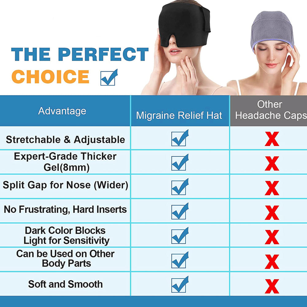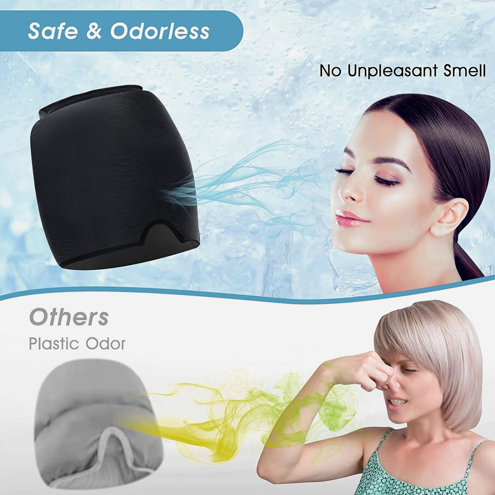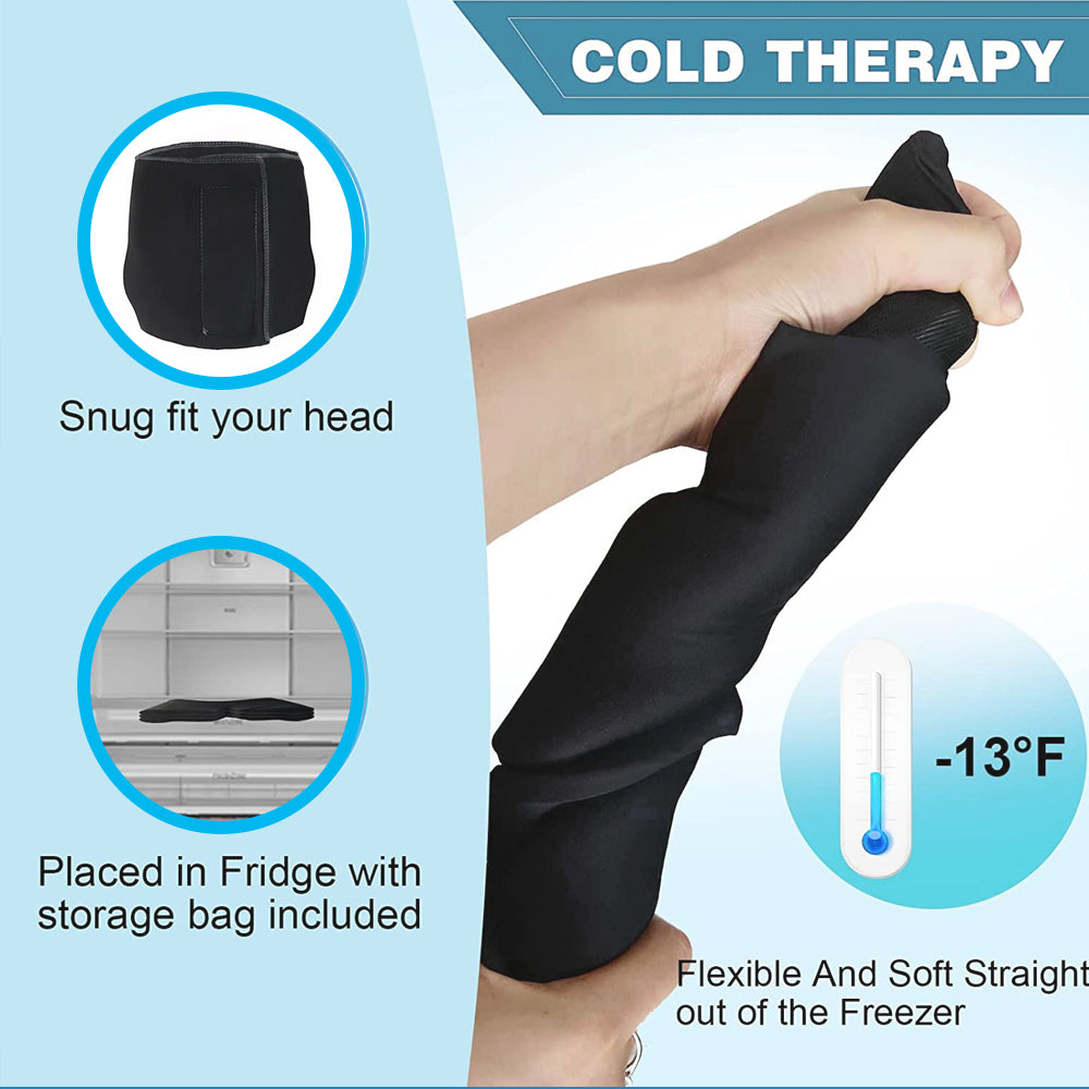 ★★★★★No matter how big your head might be, this migraine relief hat would fit. The fabric of the ice head wrap contains spandex making it super stretchable. The gel itself is although solid and very retractable. When you pull the wrap and put it on, the gentle pressure will push the cold into your pain areas directly. It has a very long Velcro strap. You will never worry about the size of your head. One size fits all. The adjustable wrap will also make it possible to be used on other body parts like arms and legs.