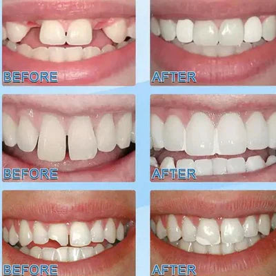 Our Tooth Repair Kit helps filling broken teeth, big gaps, uneven teeth or missing teeth. It is an instant, reliable solution to fix any smile within minutes!