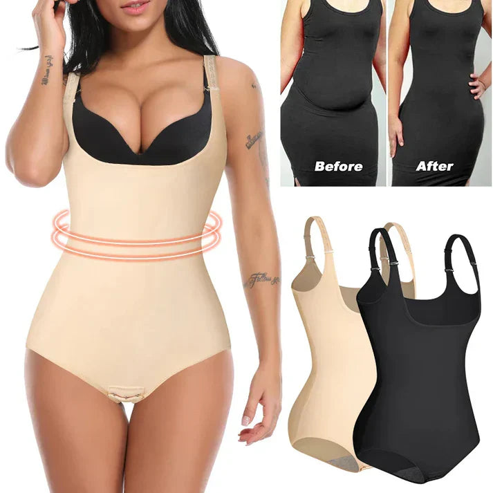 ADJUSTABLE SHOULDER STRAP AND OPEN CHEST: The shapewear for women tummy control adopts adjustable and detachable non-slip shoulder strap design,which can be freely adjusted according to the body shape.Special U-shaped open chest design on the front,which gently lifting your chest while you don't feel squeezed .It effectively control the looseness of the underarms and back to make your body no lumps. And you can wear your own cup bra.